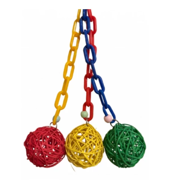 Parrot-Supplies Woven Colourful Vine Balls And Chain Parrot Toy