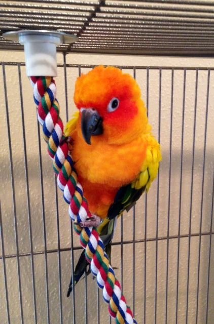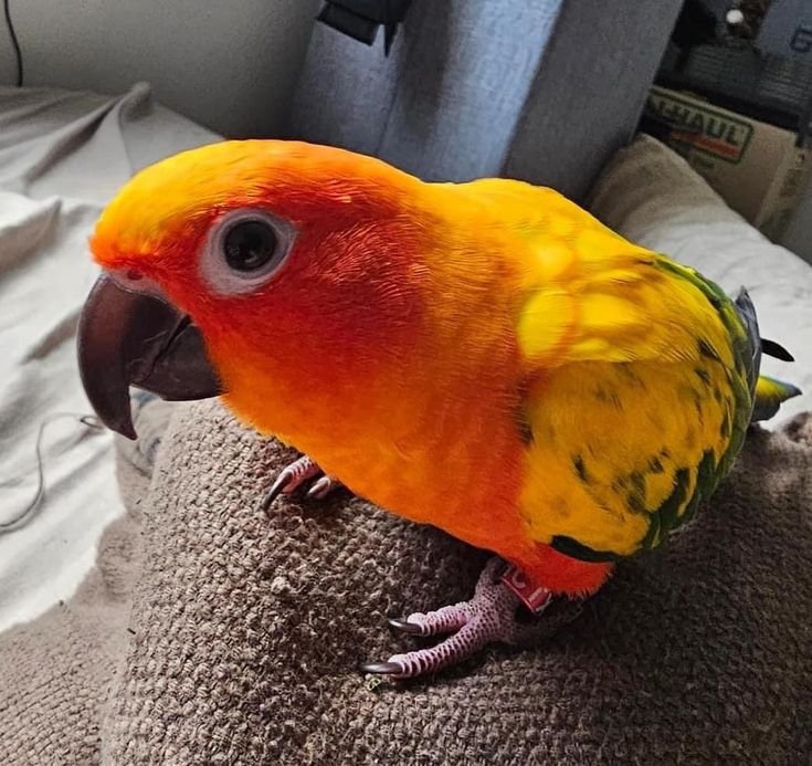 This Sun Conure currently available is a hand-raised, properly socialized companion bird with verified health documentation and DNA gender certification. This is not a bulk listing this is a carefully raised individual ready for responsible placement.